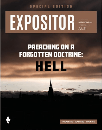 A couple of weeks ago, I heard Dr. Steve Lawson talk about Expositor Magazine on Wretched Radio with Todd Friel. Expositor Magazine is a quarterly publication from One Passion Ministries. Dr. Lawson and several other great expositors of God’s Word—including Albert Mohler, Conrad Mbewe, John Piper, Ligon Duncan, Sinclair Ferguson, John MacArthur, and more—contribute to this magazine geared toward pastors and faithful church members. Dr. Lawson decided to write this summer’s issue by himself, sharing the title of my post. Even though hell is terrifying and not easily talked about, Dr. Lawson explains to us the importance of hell and the reasons we must preach it. Please be sure to click on the links associated with the theological terms for a better understanding of the word.